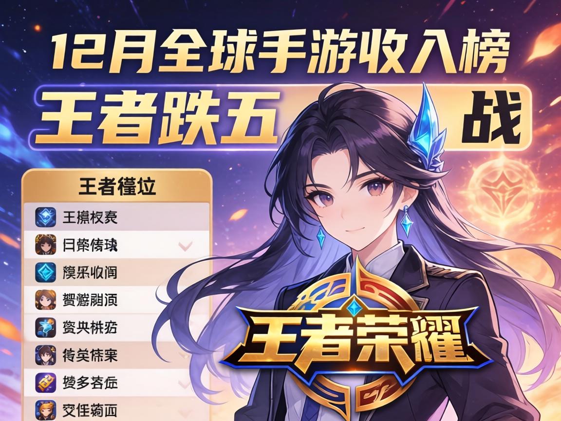 12月手游全球收入排行,王者地位下滑,跌幅高达五成。