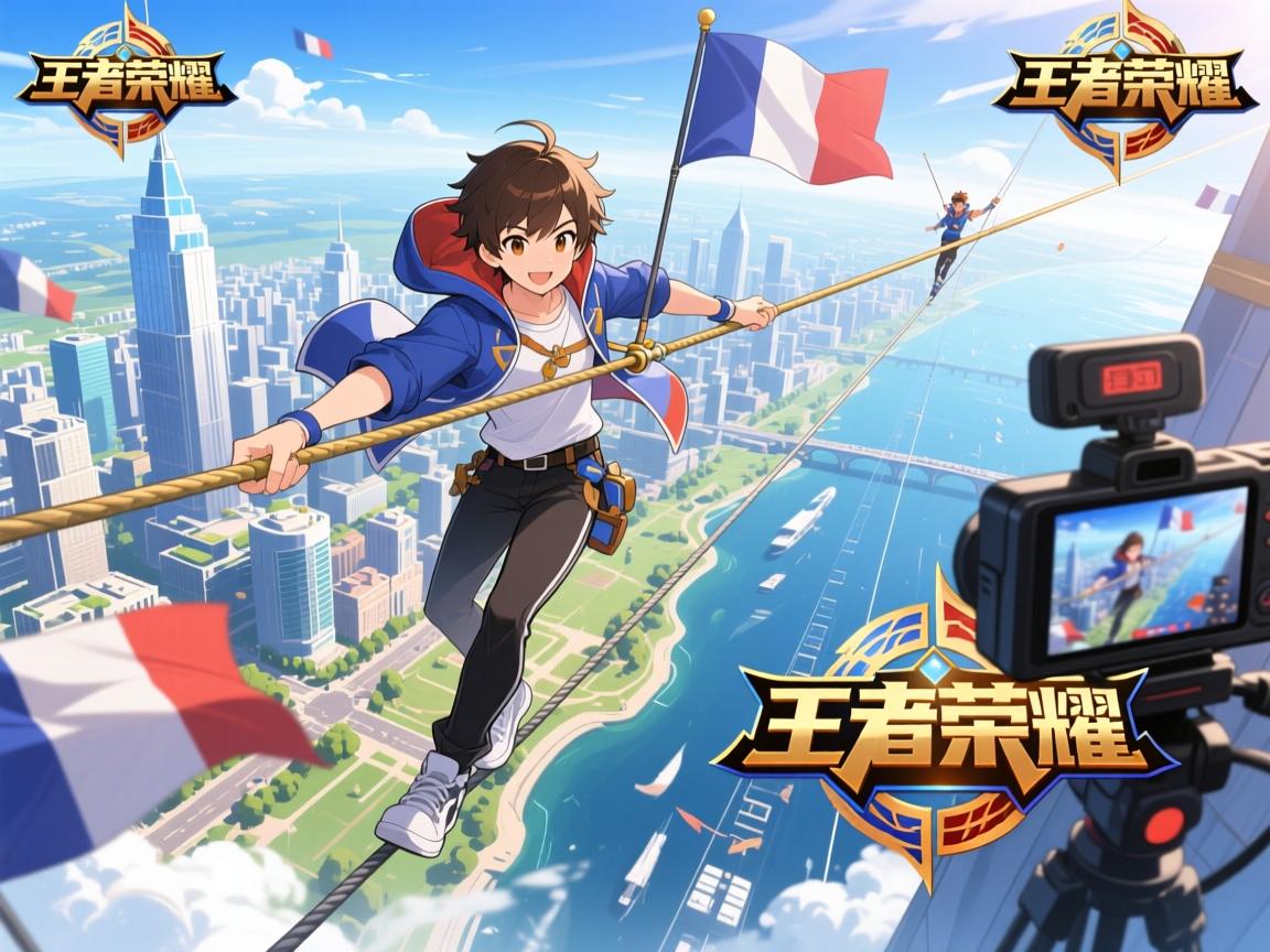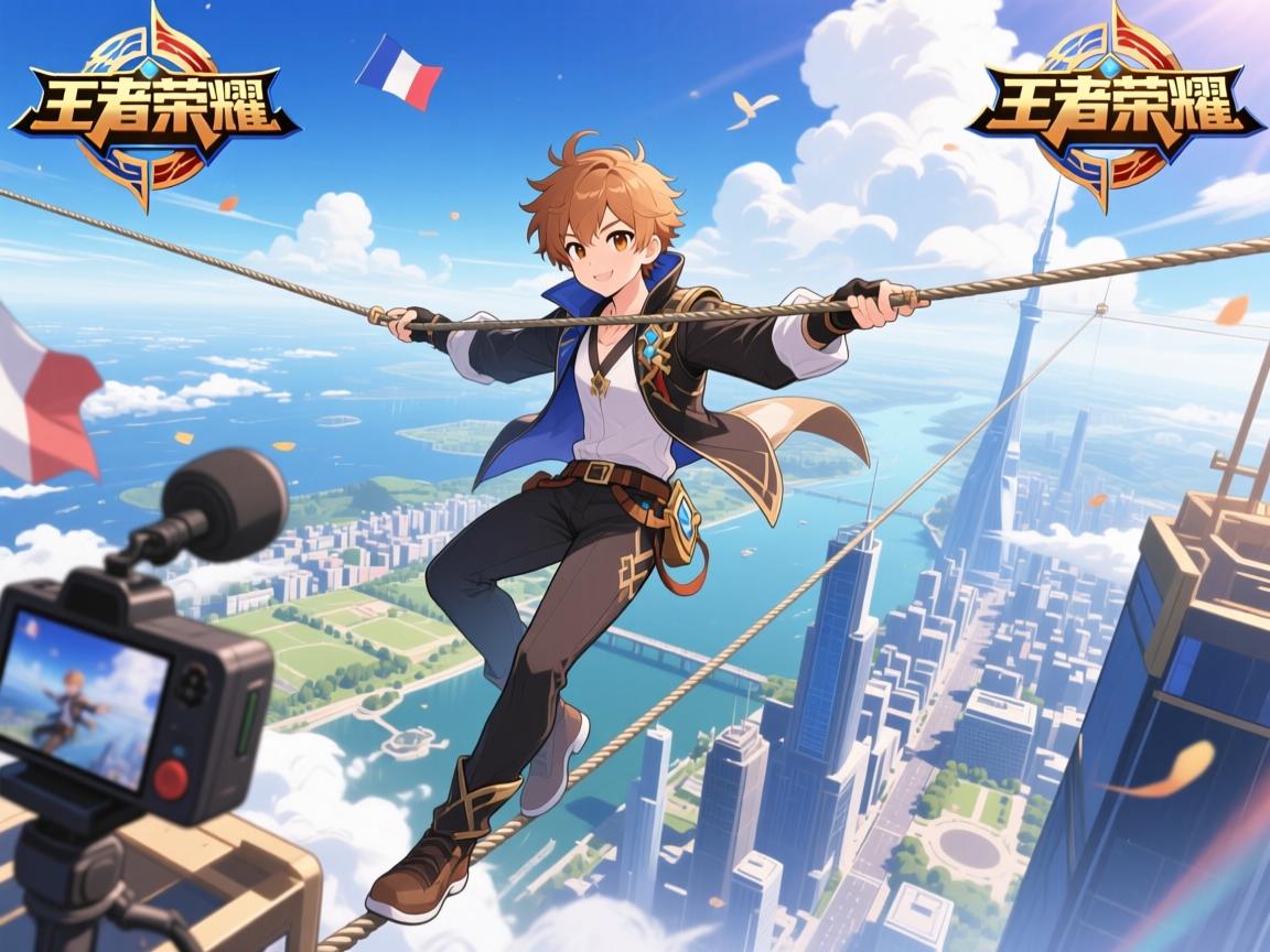法国青年高空千米走钢丝,同步直播王者荣耀游戏精彩瞬间。