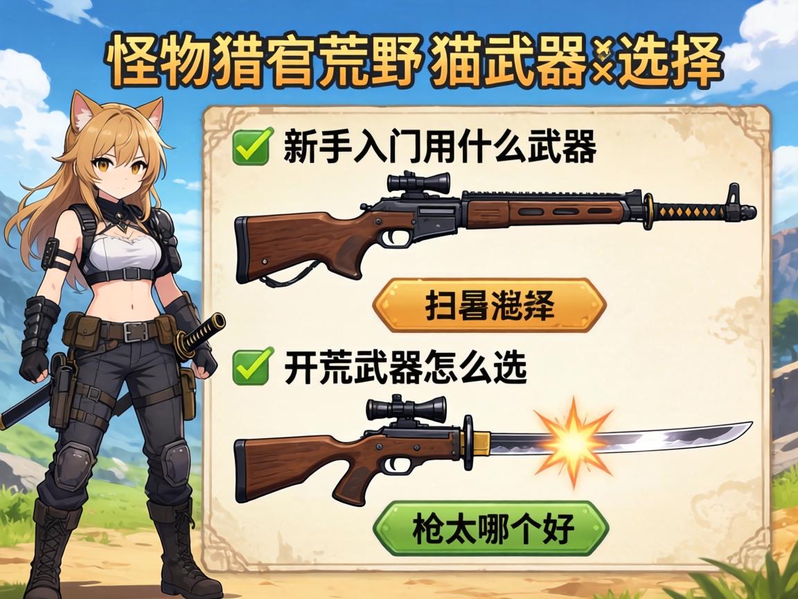 你是不是也这样,刚进《怪物猎人:荒野》看着十四把武器眼花缭乱,纠结该主练哪一把?选了大剑结果砍不中怪,拿了双刀又嫌伤害刮痧,这种尴尬我懂。今天咱们就聊聊猫武器选择这件事,毕竟选对武器,开荒效率直接翻倍。