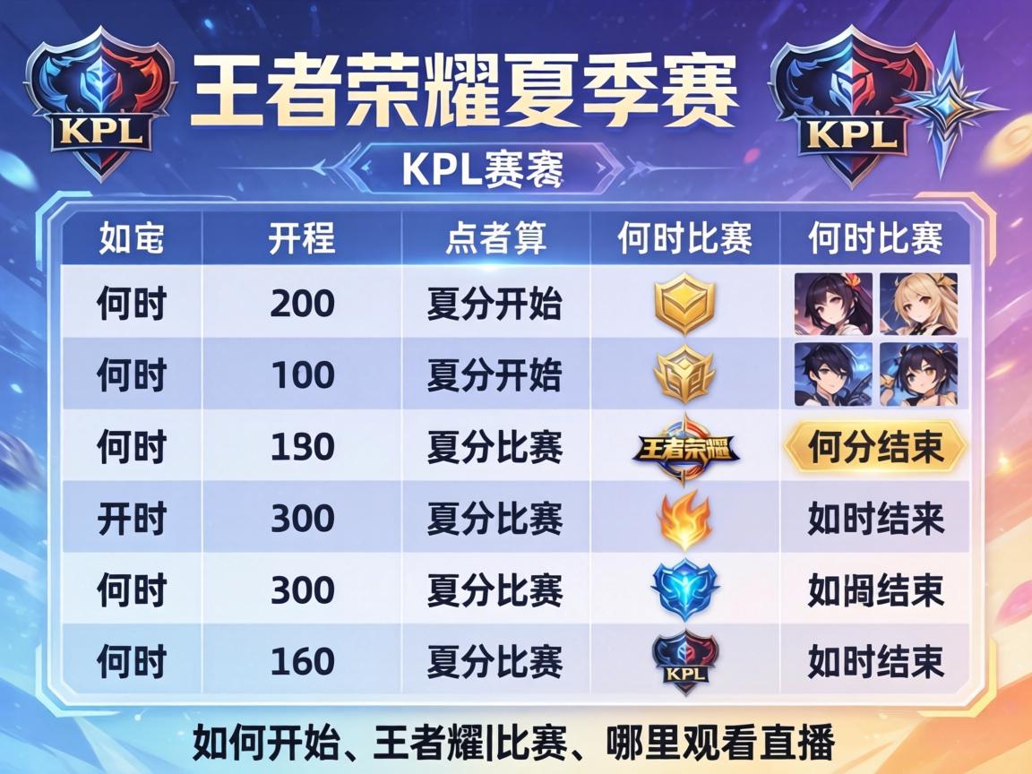 很多王者荣耀的忠实玩家和电竞爱好者,每到夏季赛就会特别关注KPL职业联赛的赛程安排。大家在搜索"王者荣耀夏季赛kpl赛程表"时,不仅想知道比赛什么时候开始和结束,还会关心战队是如何分组的、比赛具体怎么打,以及通过哪些平台可以观看这些精彩的比赛。博主经常梳理各类赛事资讯,今天就为大家详细回顾和解析一下2025年KPL夏季赛的完整赛程表和赛事详情,希望能帮你全面地了解这次赛季。