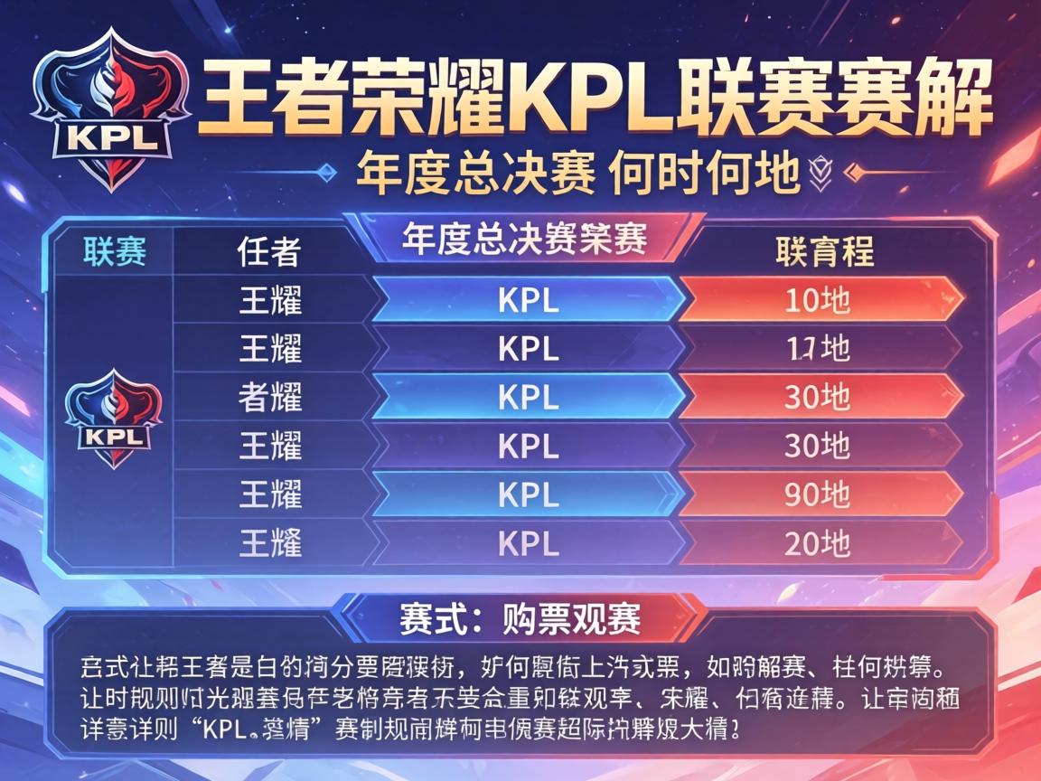 大家好,我是拥有国家一级电竞裁判资质的李教练,今天为大家详细解读2025年KPL年度总决赛的完整赛程安排。是不是经常遇到想观赛却不知道具体时间地点的情况?或者对复杂的赛制感到困惑?不用担心,博主经常使用的分析方法就能帮你轻松搞懂王者荣耀最高规格职业赛事的全部安排,这样就可以更好地规划观赛计划了。
